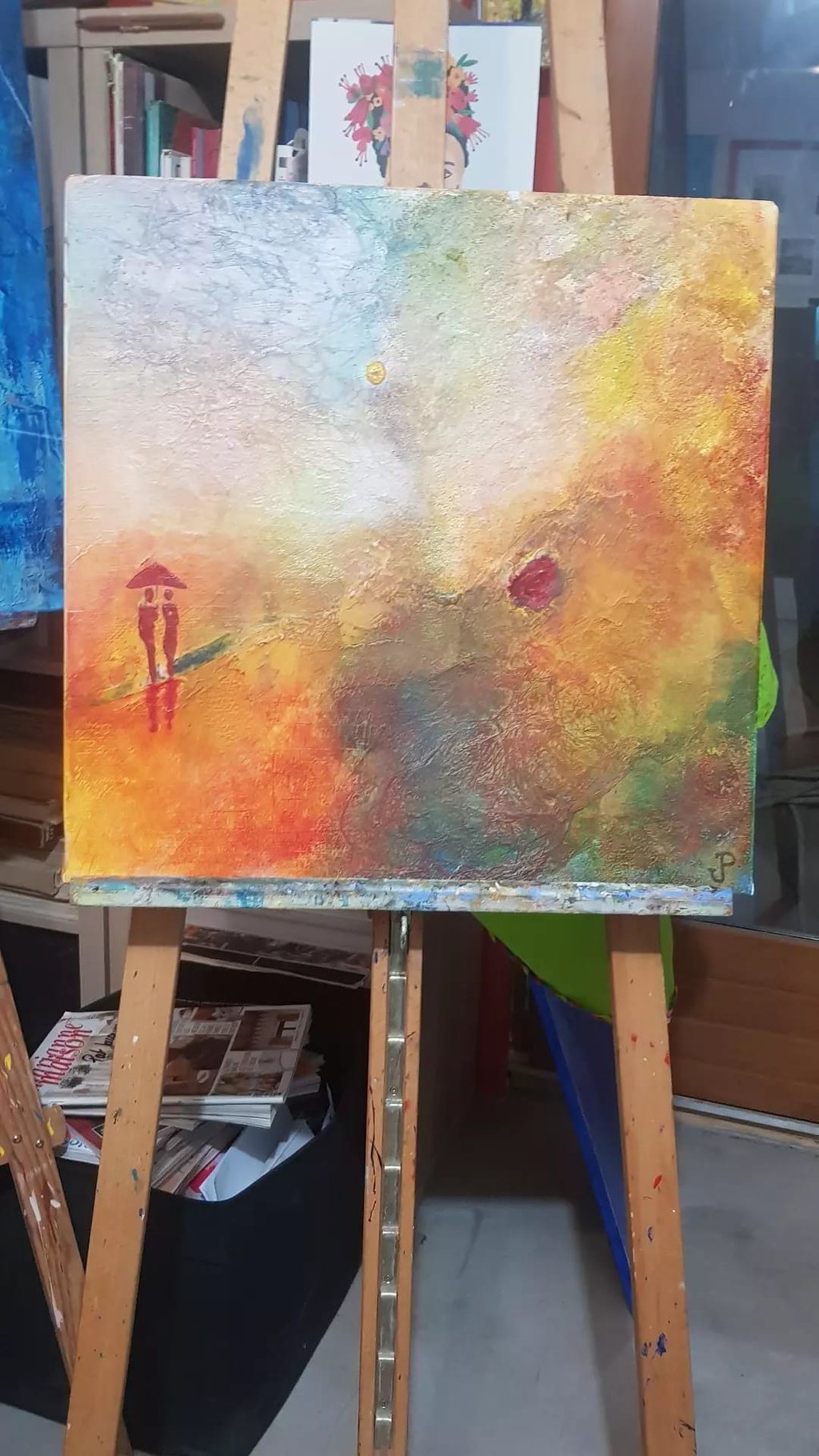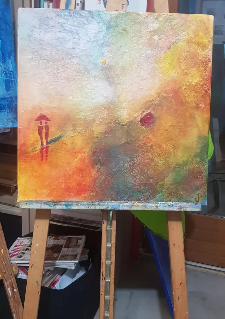 Technique mixte, collage, acrylique, sable et pigments sur toile de 30x30 cm.